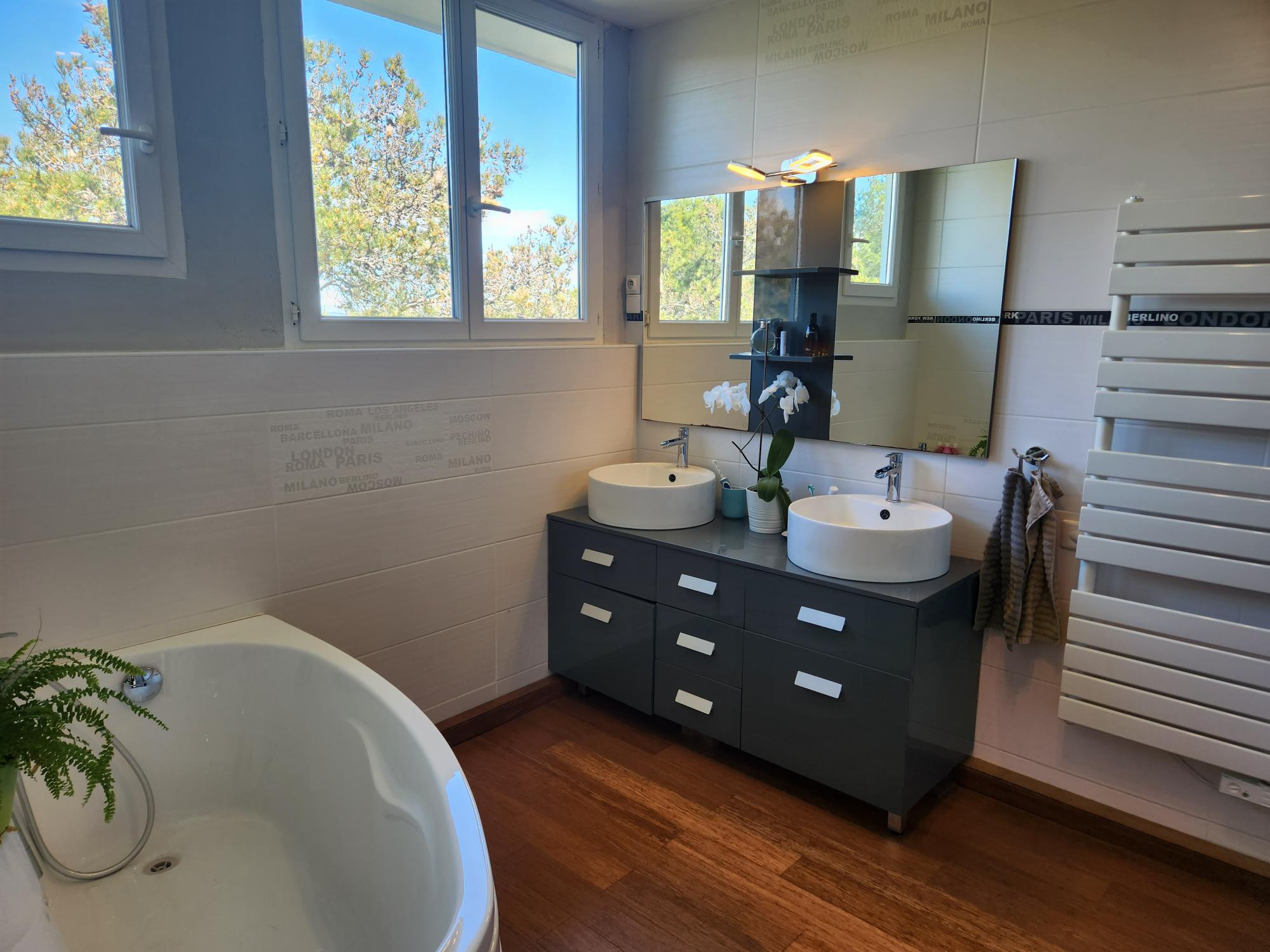 Située à Sète sur le haut du Mont Saint-Clair aux abords de la forêt domaniale des Pierres Blanches, cette propriété des années 1960 vous offre un calme inégalé. Érigée sur un terrain de 1045 m² et d'une superficie d'environ 160 m², cette maison dispose d'une grande pièce de vie avec une baie vitrée fixe toute hauteur qui vous fait véritablement plonger dans les Pins de la forêt des Pierres Blanches. Fonctionnelle, elle dispose d'une cuisine équipée ouverte sur la pièce centrale de la maison avec un ilot central qui vous permet de vivre des moments conviviaux, cinq chambres, deux salles d'eau et wc. Elle offre également un garage de 19 m² qui communique avec la maison. Cette villa bénéficie d'une parcelle plate et généreuse qui vous offre de nombreuses possibilités d'aménagement.Visite virtuelle disponible, pour plus d'informations nous vous invitons à contacter votre agence Montcétia au 04 67 78 04 01. Les honoraires sont à la charge du vendeur. Les informations sur les risques auxquels ce bien est exposé sont disponibles sur le site Géorisques : www.georisques.gouv.fr